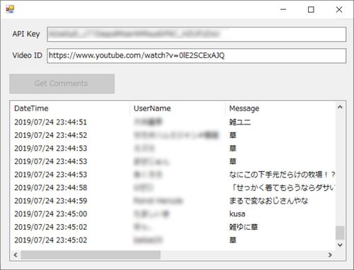 ふとYouTube APIで遊んでみたくなり、気がついたらライブ配信のコメントを取得してコメントを音声合成で再生する、という謎アプリ(.NETのフォームアプリ)ができあがってました(笑)。 YouTube API 実験アプリ(コメント音声合成再生付き) コードを貼り付けよ…